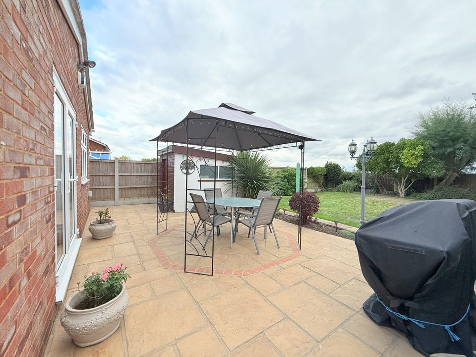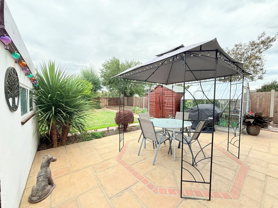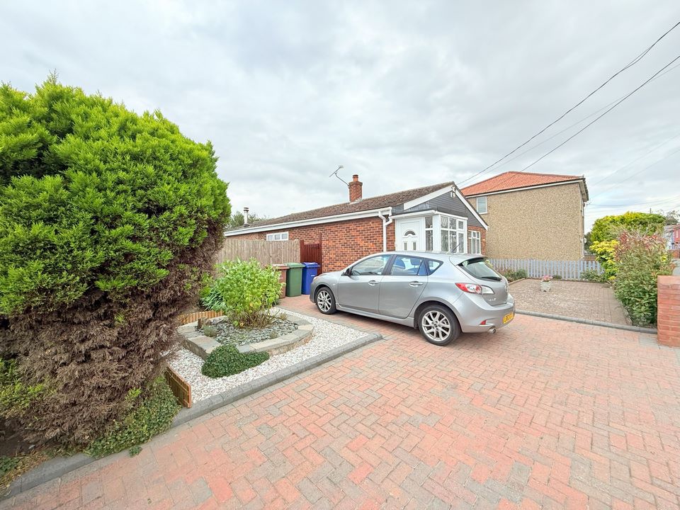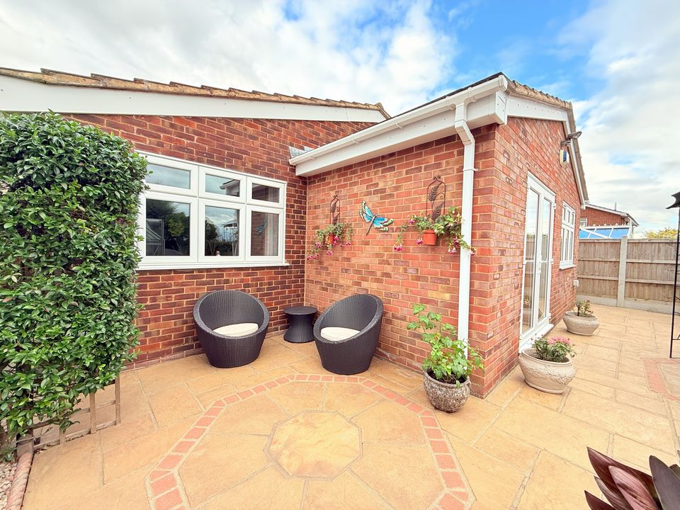 Set on a wide plot, this charming bungalow immediately impresses with its generous frontage, offering a private driveway and paved approach complemented by decorative planting. The property also benefits from gated side access, providing direct entry to the rear garden.