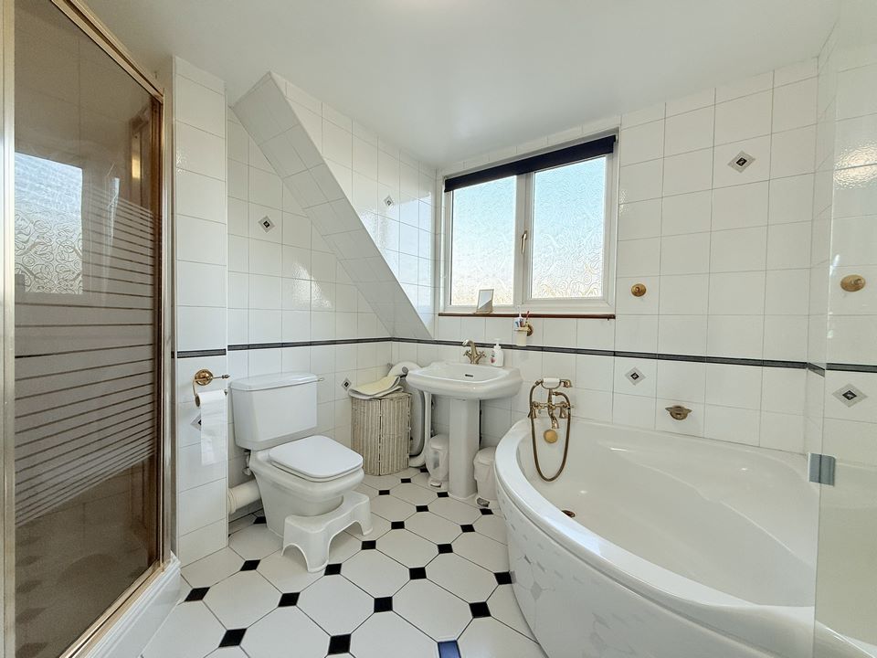 Obscure double glazed window to rear, low flush wc, bath, shower cubicle, hand wash basin, radiator,