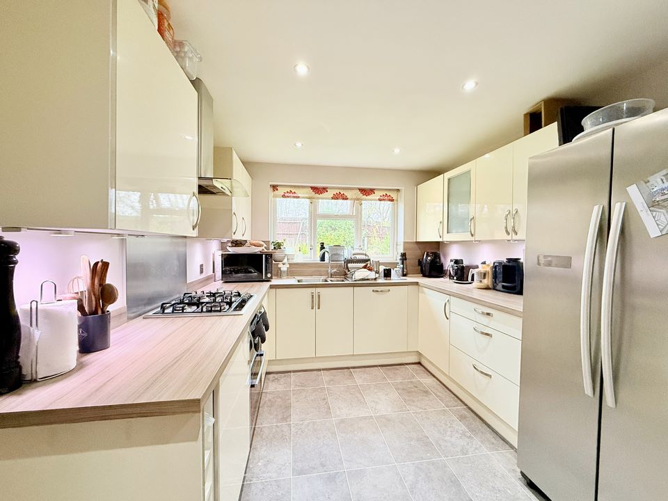 The accommodation has been thoughtfully improved and is arranged to suit modern family living. The ground floor comprises a welcoming entrance hallway, a downstairs cloakroom, and a refitted kitchen with adjoining utility area, finished to a good standard. In addition, there is a generous lounge providing an inviting main living space, alongside a separate dining room ideal for family meals and entertaining.