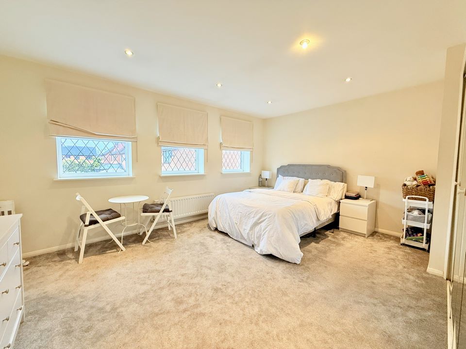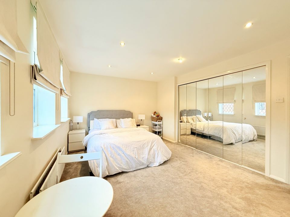 To the first floor, the property continues to impress with four well-proportioned bedrooms. The principal bedroom benefits from mirrored fitted wardrobes and its own en-suite shower room, while a further bedroom also enjoys the advantage of a stylish en-suite. A tastefully refitted family bathroom completes the upper level.