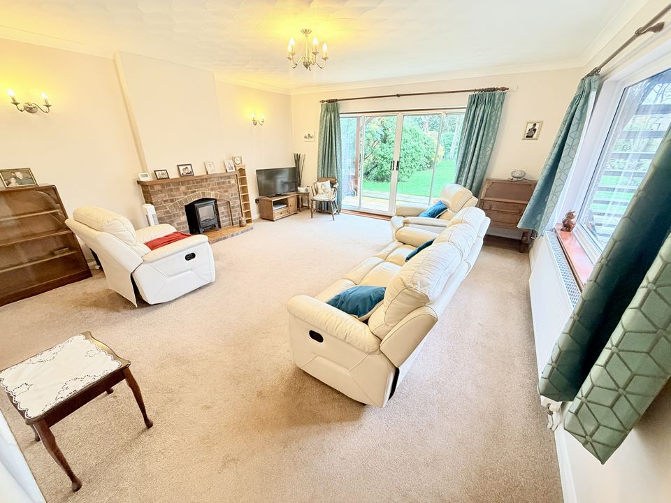 Double glazed window to side, double glazed sliding doors to rear garden, radiator, feature fire surround,