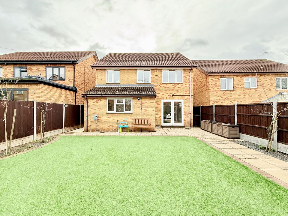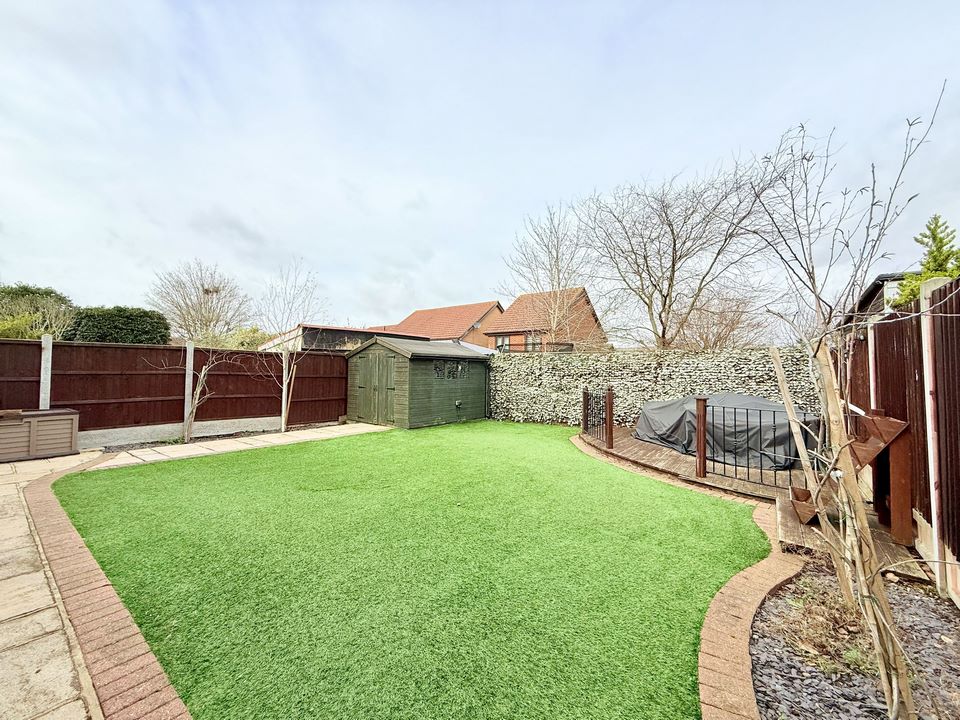 Externally, the rear garden has been designed with low maintenance in mind and features an immediate block-paved patio area, artificial lawn, and a separate decked seating area to the rear, ideal for outdoor relaxation and entertaining. A timber shed provides additional storage. To the front of the property, a block-paved driveway accessed via a dropped kerb offers off-street parking and leads to the integral garage. To the left side of the house there is also the added benefit of an installed electric vehicle charging point.