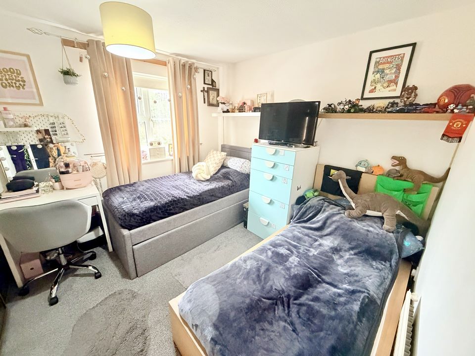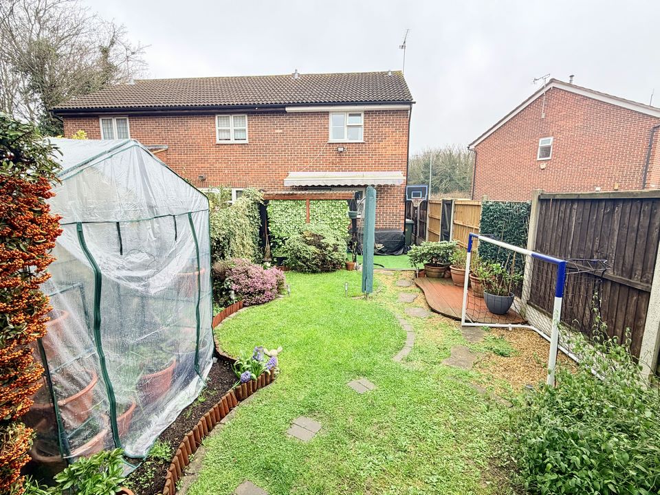 Offered for sale with no onward chain, this well-presented two-bedroom end-of-terrace house is ideally situated within the popular Badgers Dean development and conveniently located close to Grays Town Centre and the mainline railway station. The internal accommodation is entered via a spacious entrance porch, which leads into the living room with stairs rising to the first-floor landing. To the rear of the property is a kitchen/diner fitted with a range of matching base and wall-mounted units. The space also provides room for dining and offers views of, and access to, the rear garden. Upstairs, the first-floor landing provides access to two bedrooms, both benefiting from fitted wardrobes, and a family bathroom. The bathroom is fitted with a suite including a bath with a shower over, along with a window providing natural light and ventilation. Externally, the property benefits from two allocated off-street parking spaces and enjoys an attractive rear garden measuring approximately 41 ft in depth. The garden also features gated side access and a plastic timber shed, offering useful storage
