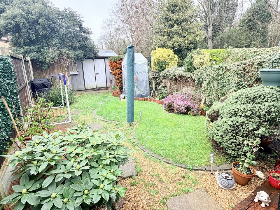 Approximately 41ft in depth, gated pedestrian side access, plastic shed, shrub beds, shingled area, remainder laid to lawn