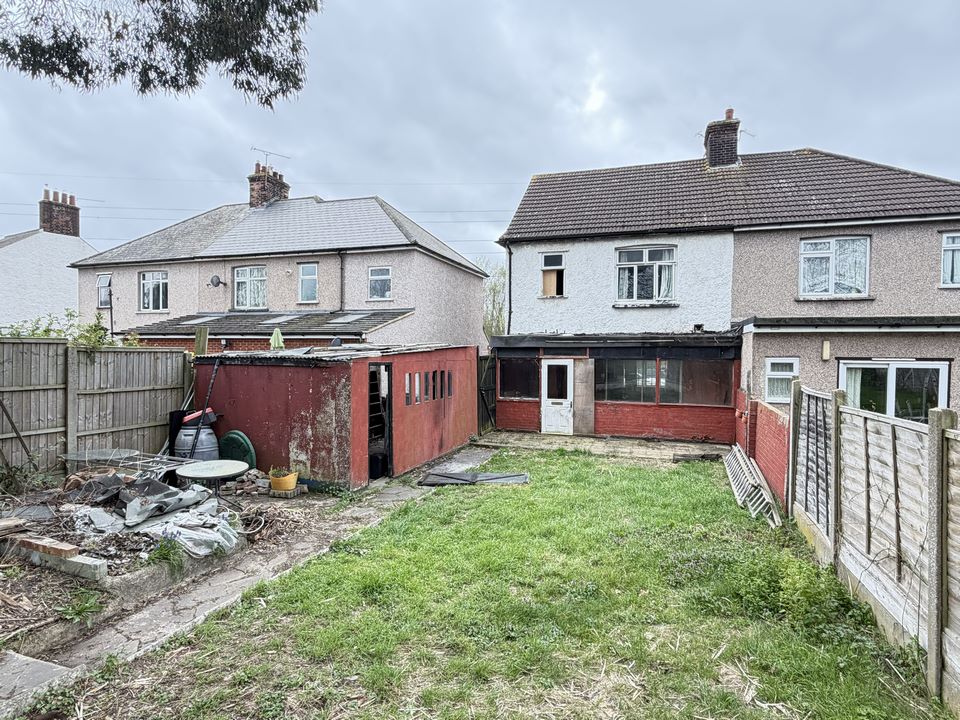 Offering excellent potential to create a substantial family home, this 1930s bay-fronted semi-detached property is arranged over three floors and requires complete modernisation. The property is offered with no onward chain and early vacant possession. Externally, the property benefits from a driveway leading to a detached garage and occupies a generous plot. The rear garden measures approximately 140ft in length offering scope for extension or landscaping, subject to the necessary planning permissions and consents. The internal accommodation comprises an entrance hallway with stairs rising to the first floor, an open-plan lounge/diner measuring approximately 23'5 ft, a kitchen, and a lean-to overlooking the rear garden. On the first floor, there are three bedrooms, a family bathroom, and a separate WC. The second floor provides two additional rooms and access to loft storage. Please note, we have not been provided with copies of building regulations approval for the loft conversion, and buyers should rely on their own investigations regarding its status and use. The property is conveniently located with access to the A13 and M25 and is within proximity to Lakeside Shopping Centre, making it well positioned for commuters and local amenities. Viewings are strongly recommended to appreciate the potential on offer.Accommodation Comprises:-